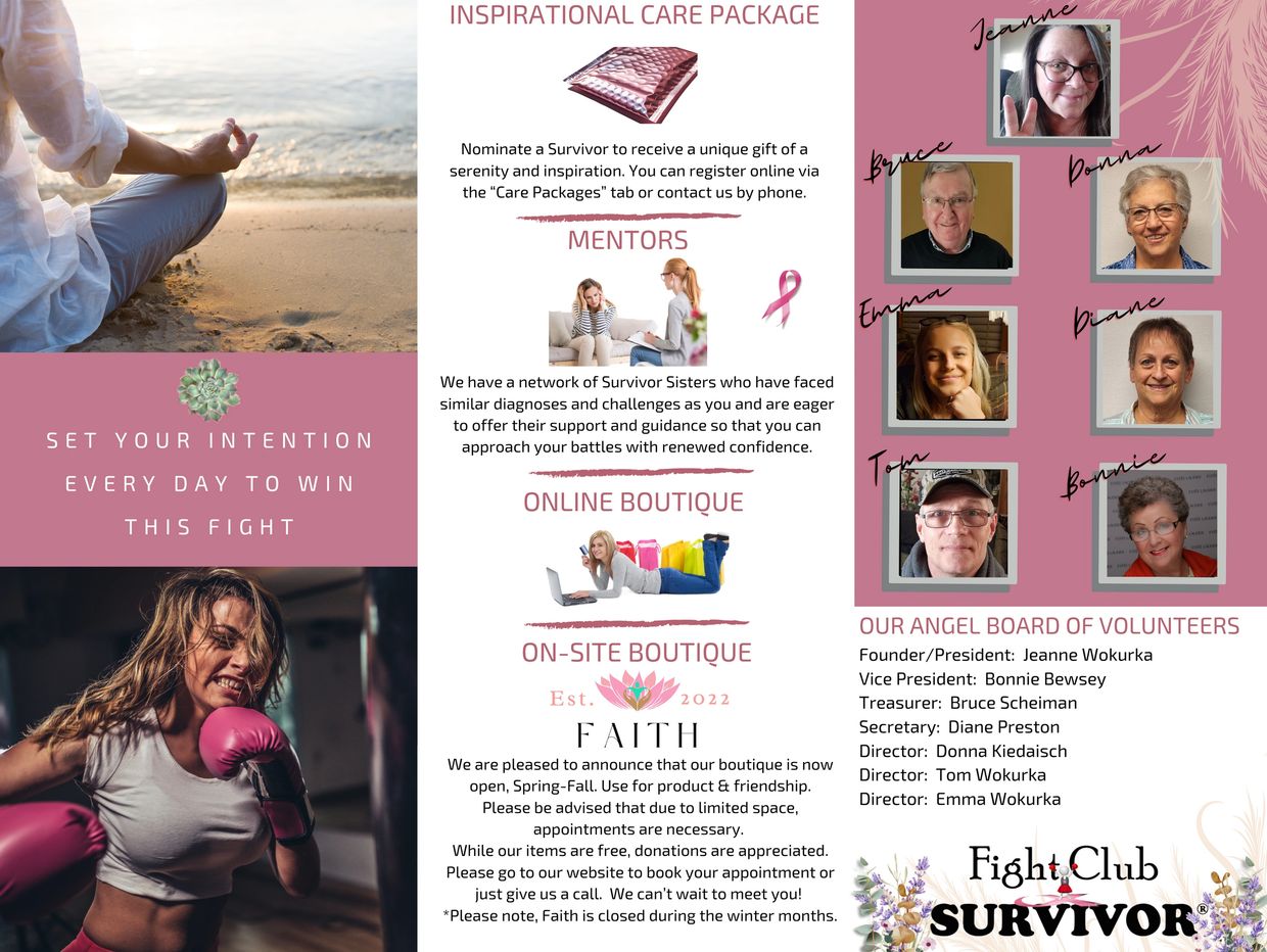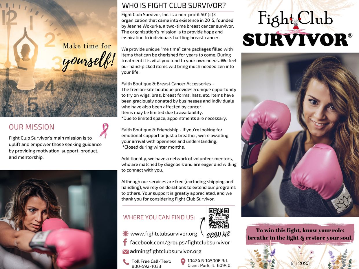 Among the day-to-day expenses of running a business, contributions to Fight Club Survivor are used to support the various programs that have demonstrated an impact in helping women overcome their fears of the unknown while fighting for their lives.